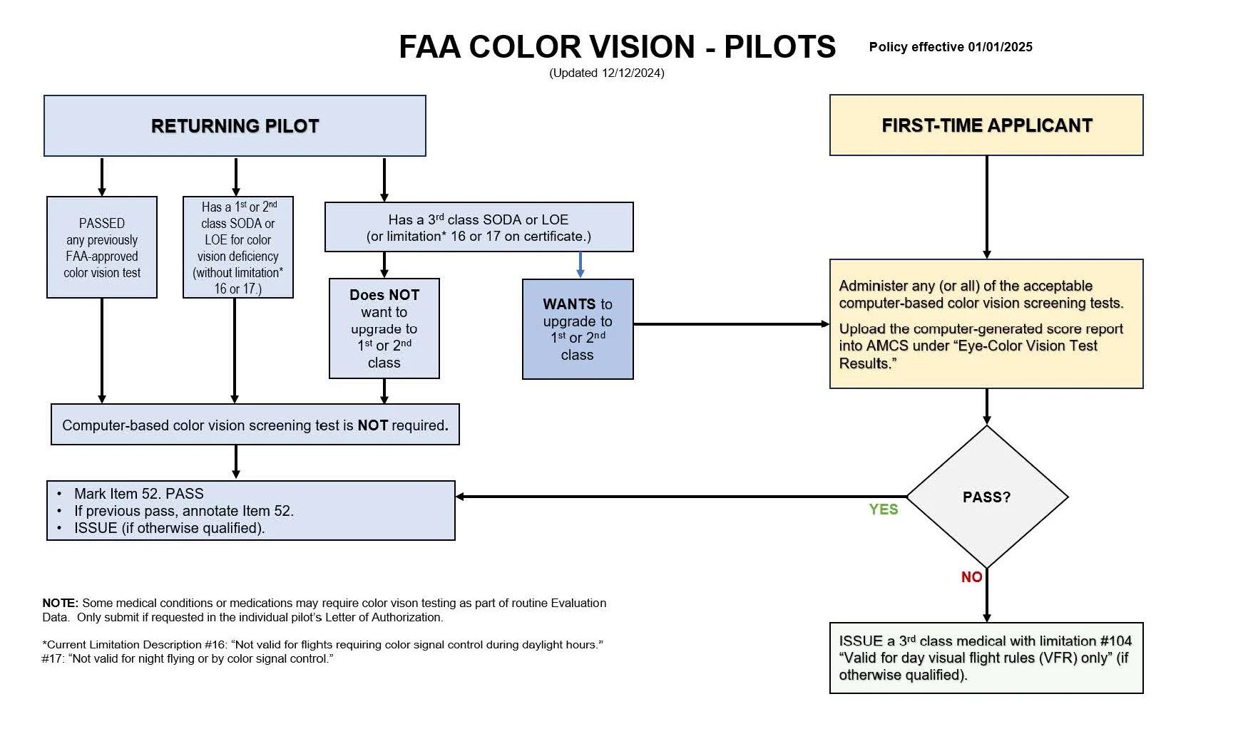 Starting Jan 1st 2025 new pilots and those pilots who want to move up in class for example from class 3 to class 2 must undergo new digital color vision testing. All other pilots will be grandfathered in.